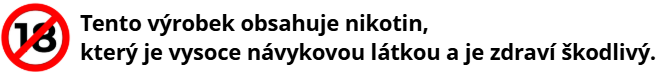 Tento výrobek je určen pouze pro dospělé. Obsahuje nikotin, který je vysoce návykovou látkou. Užití osobami, které nekouří, se nedoporučuje. Při požití je výrobek škodlivý pro zdraví.